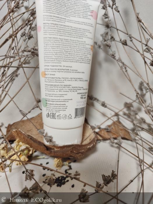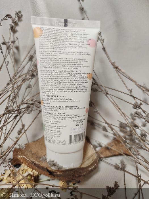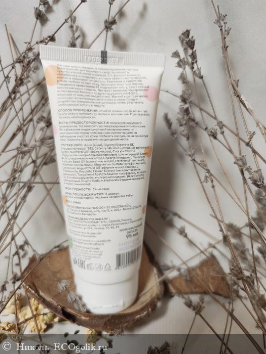 В нём нет: силиконов, минерального масла, искусственных красителей и консервантов, синтетических отдушек, ароматизаторов. Я, как мама, могу быть спокойна, за качество этого уходового продукта. Я с радостью наношу на тело своего ребёнка этот натуральный и безопасный крем. Самое главное, что он нравится не только мне, но и моему сыну.