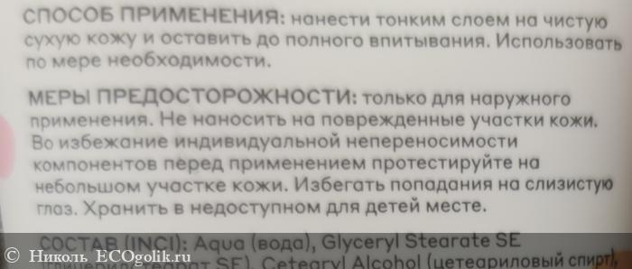 - СПОСОБ ПРИМЕНЕНИЯ: Нанести тонким слоем на чистую сухую кожу и оставить до полного впитывания. Использовать по мере необходимости.