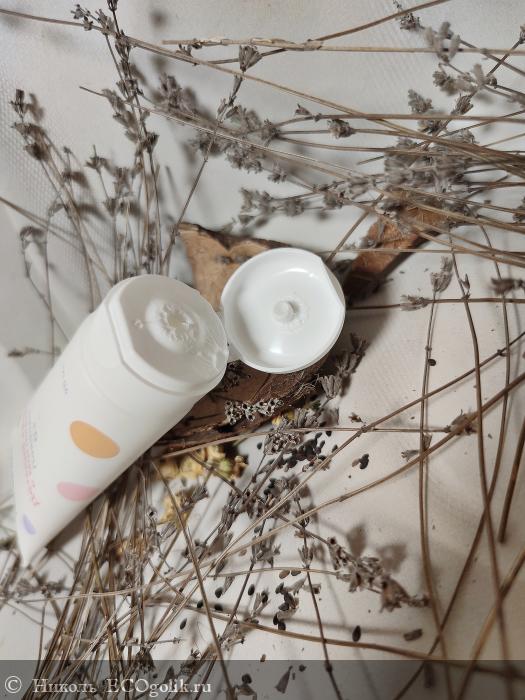 У этого уходового продукта кремовая, однородная консистенция белого цвета, которая хорошо держит форму, средней плотности и густоты, она лёгкая в нанесении.
