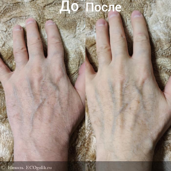 - Хорошо смягчает кожу, придаёт ей ухоженный вид. Но так как у меня нормальная кожа, эффект не виден по фото, хотя он есть. По этой причине, дальше я покажу эффект на коже рук моего отца.