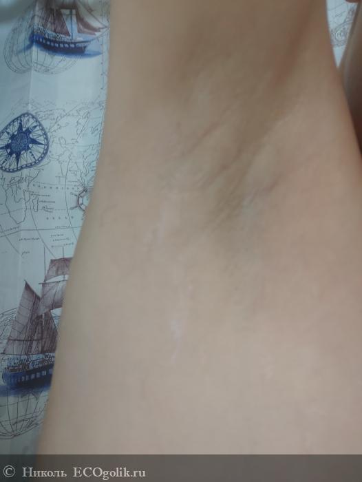На коже дезодорант не оставляет липкости, не забивает поры. Он не ощущается на коже и не виден на ней. Впитывается дезодорант минутки 2-3. Защиты от запаха пота мне хватает на целый день. (Но надо сказать, что я даже при сильной нагрузке я не сильно потею, и когда потею, запах пота очень лёгкий, не сильно чувствуется, так как я слежу за своим питанием.)