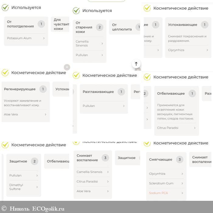 - Citrus Paradisi Extract (экстракт грейпфрута) - антиоксидант, обладает противовоспалительным, тонизирующим, осветляющим, себорегулирующим действиями, придаёт аромат.