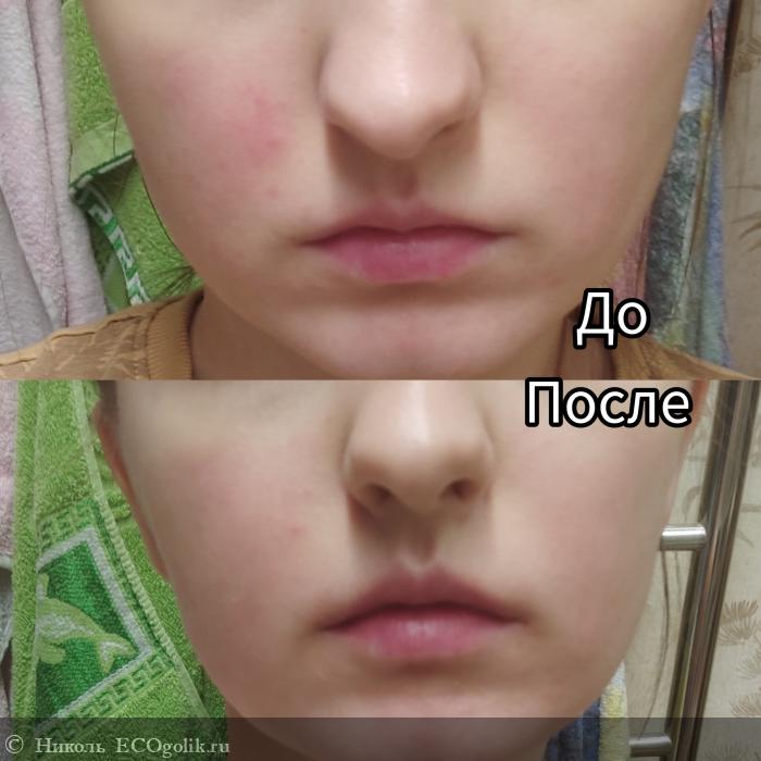 - Прекрасно снимает покраснения. Вот на фотографии видно думаю, что сам очаг покраснения стал гораздо меньше, краснота ушла.