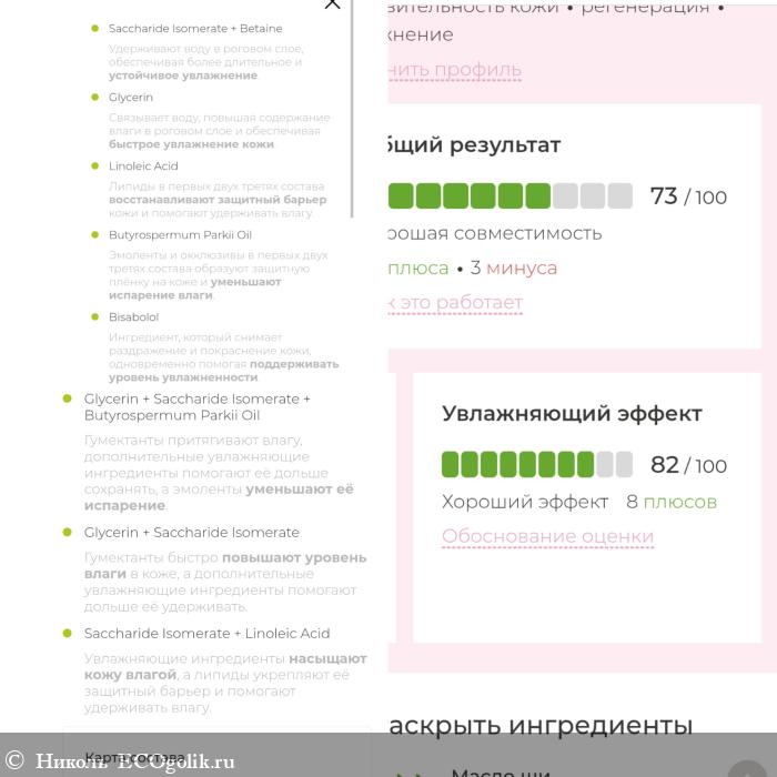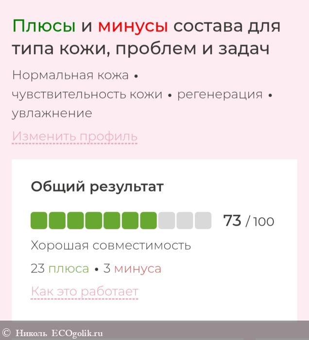 Кролик-экоголик выделил плюсы и минусы, исходя из моего профиля, и оценил эффективность по нескольких факторам. Общий результат получился таким 73%. Хорошая совместимость. 23 плюса, 3 минуса.