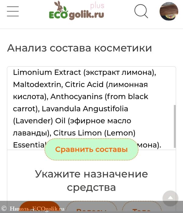 Кстати, в сервисе проверки состава теперь появилась графа сравнить составы. Очень удобная штука. Теперь не нужно самой сравнивать, кролик-ECOGOLIK