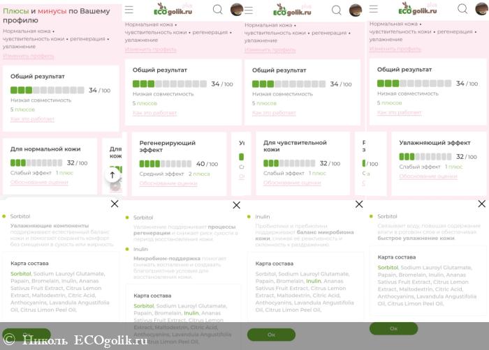 сделает всю работу за Вас качественно, тщательно и кропотливо, ещё и эффективность покажет, исходя из ваших данных профиля. Теперь выбирать средства стало ещё проще, а совершать выбор ещё более осознанно и скрупулёзно. Теперь можно подобрать максимально подходящие и эффективные к вашему типу кожи уходовые продукты, оценивая их по множеству критериям.