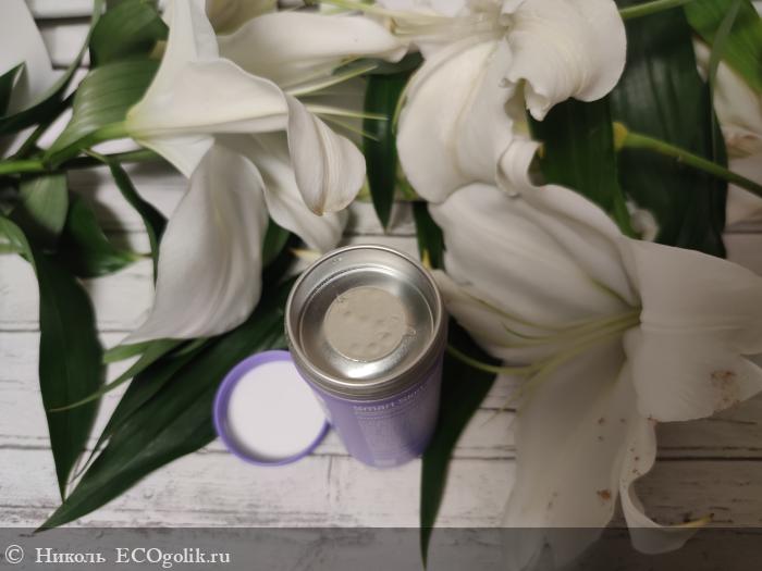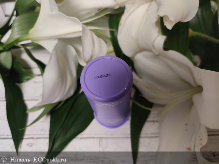 На баночке написана вся необходимая информация про это средство. Информация грамотно структурирована и разделена на пункты. Текст легко читаем, он напечатан белым шрифтом на фиолетовом фоне.