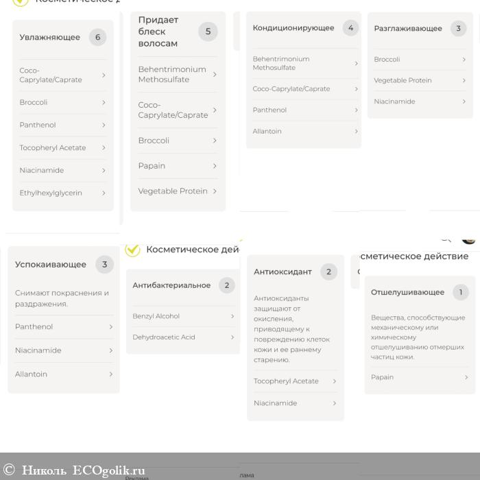 Прикреплю разбор компонентов по косметическому действию.