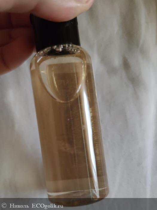 Я брала гель для душа в тренажерный зал, поэтому переливала его в небольшой флакончик. И тут как раз оттенок геля заметен.