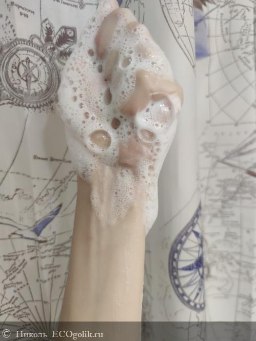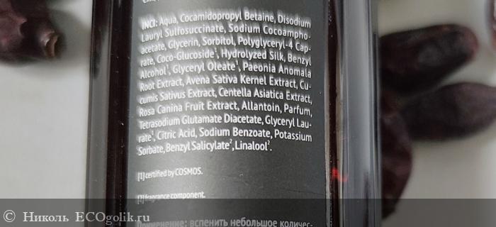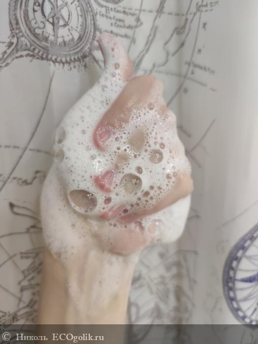 - Отлично пенится за счёт таких ПАВ, как: кокамидопропилбетаин, динатрия лаурил сульфосукцинат, натрия кокоамфоацетат, кокоглюкозид, глицерил лаурат.