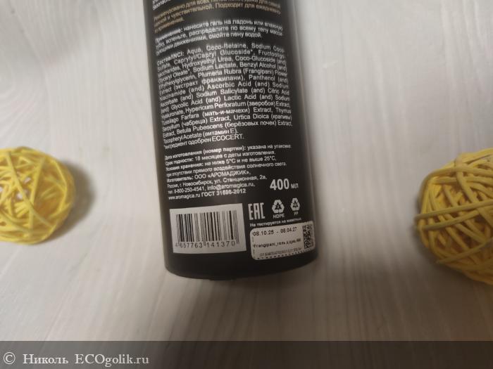 - Изготовитель: ООО «АРОМАДЖИК» Россия, г. Новосибирск. Указан тут же полный адрес, e-mail, номер телефона, сайт
