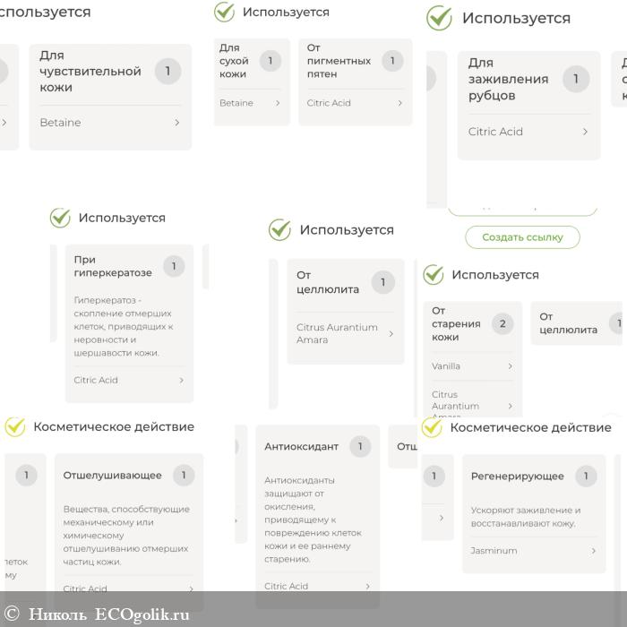 - Citric Acid (лимонная кислота) очищает, является антиоксидантом и консервантом, обладает отбеливающим, противовоспалительным действиями.