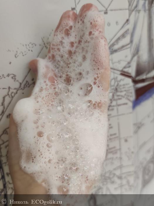 - Хорошо пенится, не сильно, но и не слабо. Пена образуется за счёт таких ПАВ, как: Cocamidopropyl Betaine, Disodium Lauryl Sulfosuccinate, Sodium Cocoamphoacetate, Coco-Glucoside, Glyceryl Laurate.