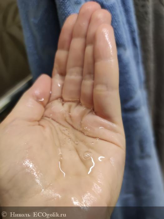 У геля средняя по густоте и плотности консистенция. Уходовый продукт прозрачный, гелевой текстуры, он достаточно текучий.