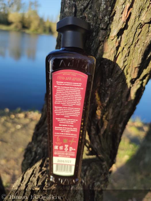 Дизайн фантастический у этого средства. На этикетке нарисован золотой кабанчик. Золотые надписи на красном фоне смотрятся изумительно. Флакончик - одна сплошная эстетика, наслаждение для глаз. Хочется его постоянно рассматривать. Держать в руке флакон приятно, в душе он не скользит в руках за счёт орнаментов на сторонах флакончика.