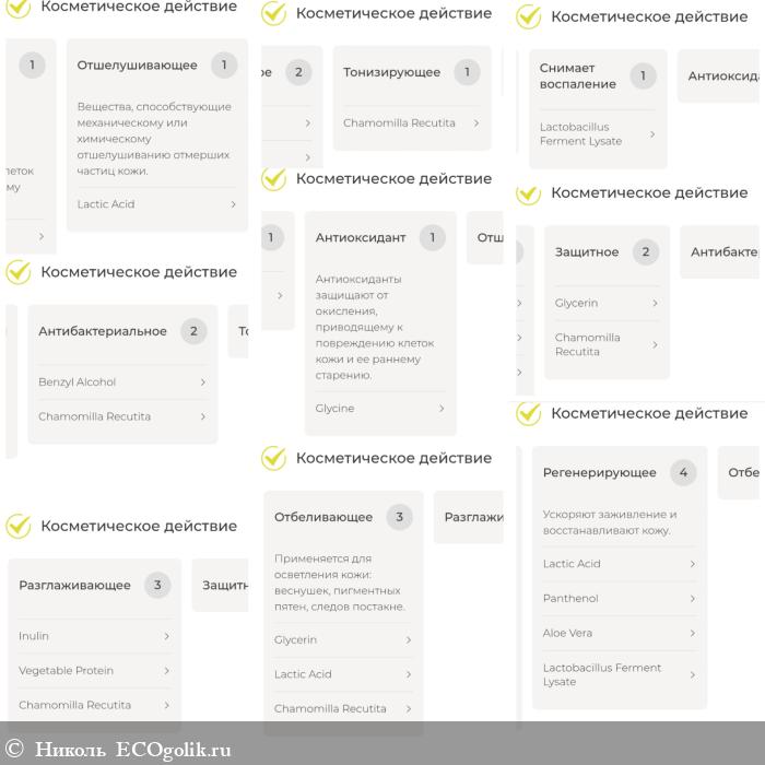Дано подробное описание геля и расписаны действия компонентов, входящих в его состав. Имеются следующие значки:
