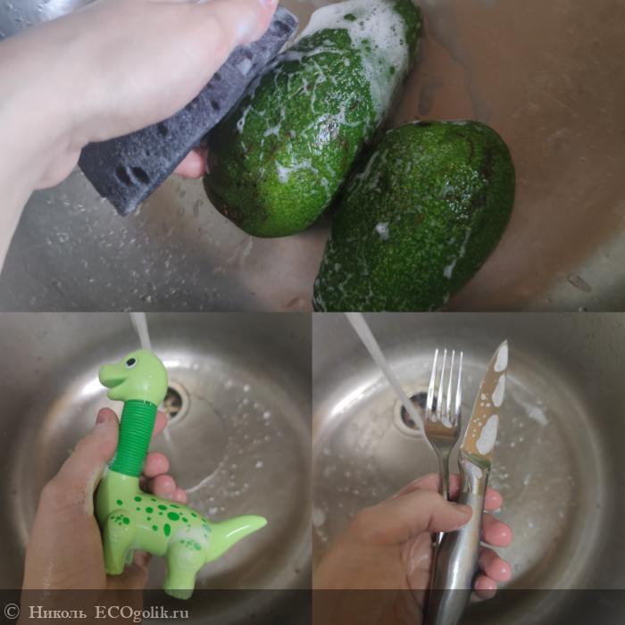 Этот гель имеет для меня аромат эфирного масла лемонграсса. Этот аромат поднимает мне настроение всегда. Так что мытьё посуды для меня теперь стало приятной рутиной. Когда я мою горы фруктов, овощей, игрушек, посуды, то моя голова полностью разгружается, я ни о чём не думаю. Причём аромат лемонграсса достаточно насыщенный, яркий, приятный. Но он не остаётся на руках, посуде, детских игрушках, грызунках, фруктах, овощах, ягодах.