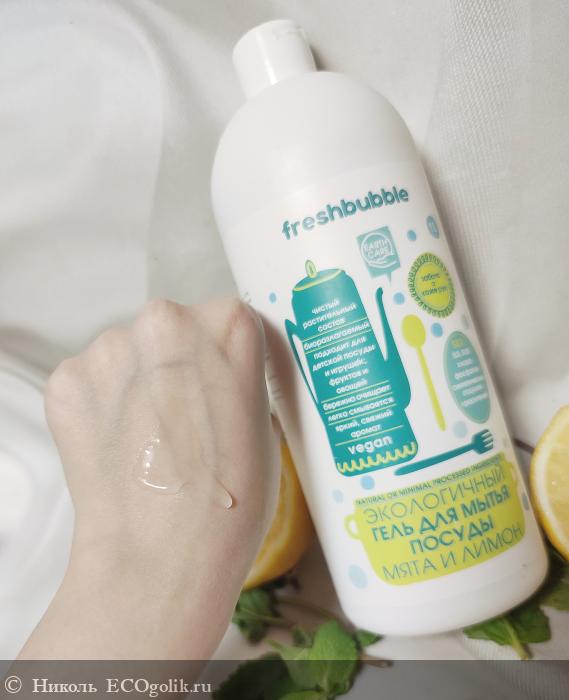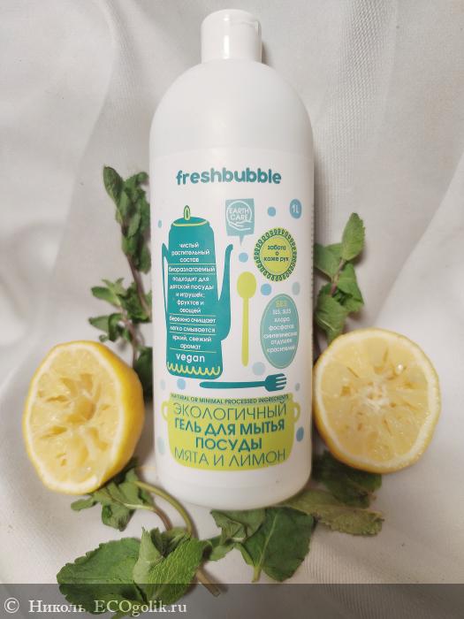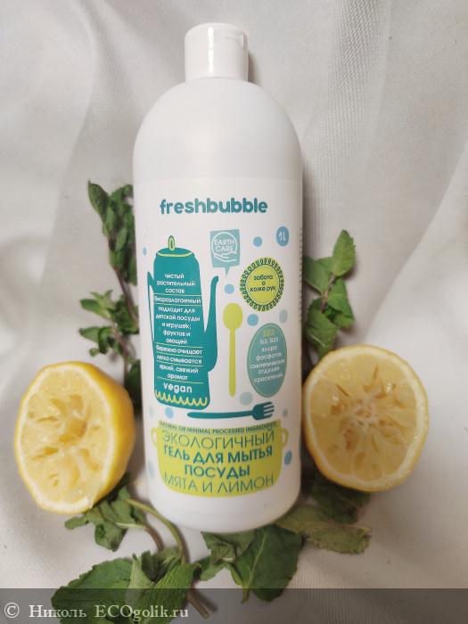 Николь: Экологичный гель для мытья посуды мята лимон Freshbubble. Он покорил меня ароматом лемонграсса. Очищает прекрасно, даже в холодной воде.