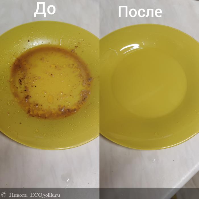 - Эффективно удаляет жир и масло, посуда сияет от чистоты.