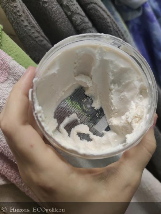 На прозрачной влагоустойчивой наклейке, приклеенной на банку, имеется вся необходимая информация про этот уходовый продукт. Текст написан чёрным шрифтом. Он легко читаем. Информация грамотно структурирована и разделена на пункты. Каждый пунктик выделен жирным, чёрным шрифтом.