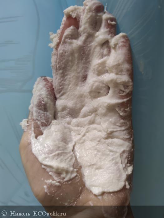 Но при размазывании и соприкосновении с тёплотой рук и водой происходит магия и этот мусс превращается в кремовую, аппетитную на вид, массу.