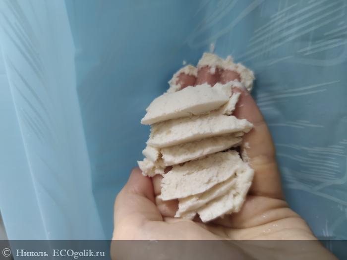 - Хорошо пенится за счёт таких компонентов, как: Sapindus Trifoliatus (экстракт мыльного ореха) Extract. Saponified (Coconut) Oil, Saponified (Olive) Oil, Glyceryl Laurate (глицерил лаурат). Облачко пены лёгкое, воздушное получается, хорошо держащее форму.