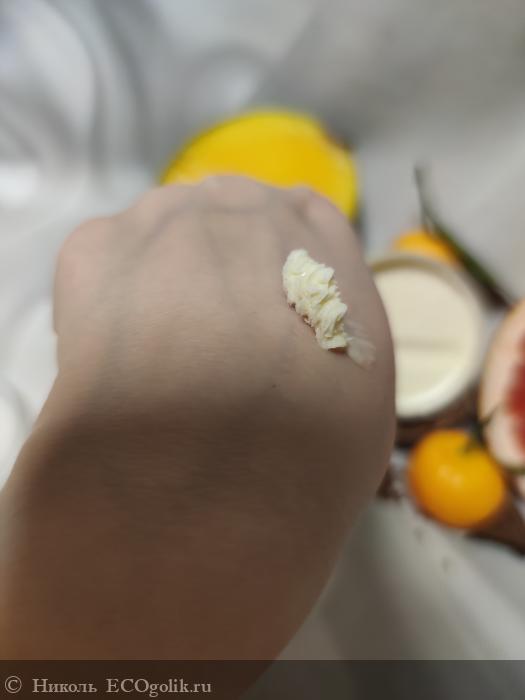Аромат имеет приятный, фруктовый, напоминает тропический коктейль по аромату, который я пробовала на море. В этом аромате чувствуются нотки соков манго и ананаса, если принюхиваться, можно ощутить нотки эфирных масел мандарина и грейпфрута. Аромат после мытья остаётся на волосах в течение 6 часов.