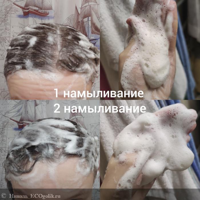 - Применение: нанести небольшое количество мусса на влажные волосы, распределить по всей длине, нежно массируя до образования пены, смыть водой.