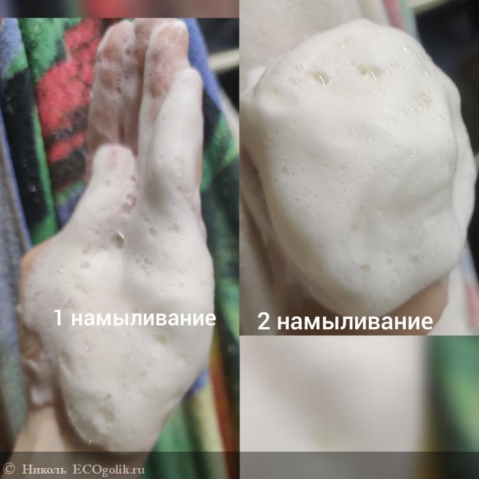 В 1 намыливание пены не так много, но во второе уже получается пышное, воздушное, объёмное, хорошо держащее форму, облачко пены.