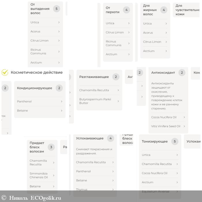 - Citrus Limon (Fruit Juice Powder) сок лимона - уменьшает выпадение и ускоряет рост. Обладает антисептическим, противовоспалительным действиями. Нормализует секрецию, снимает раздражение кожи.