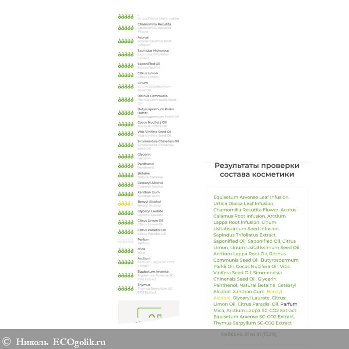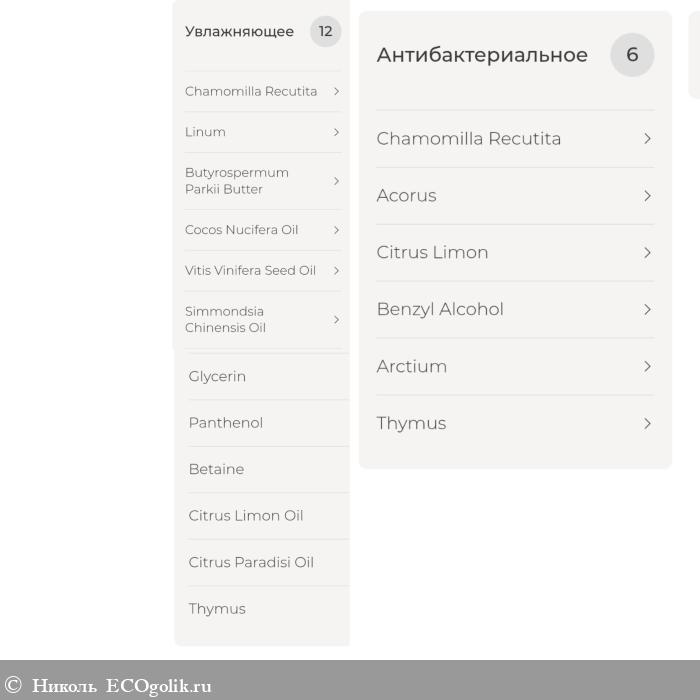 Состав замечательный, он безопасный, натуральный. В нём отсутствуют SLS, SLES, парабены, минеральное масло, силиконы, плёнкообразователи, искусственные консерванты, красители, ароматизаторы, отдушки.