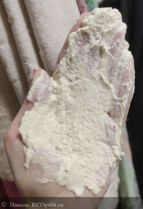 После распределения мусса по ладошкам, он стал напоминать больше кремовую консистецию.