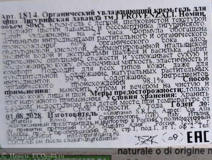 Подводя итог вышесказанному, гель-крем увлажняющий растительный "Лигурийская лаванда" от I PROVENZALI мне понравился, несмотря на его недостатки, я кремом осталась довольна. Но у меня и кожа нормальная, в целом. Да, есть сухость чуть, да, увлажнения требует, иногда покраснения возникают. Но, в общем, особых проблем с ней нет. Так что, такой крем, дающий лёгкий довольно эффект мне подошёл. Если Вы ищите лёгкий крем на весну/лето, он может подойти для этой цели, но это если Вас не отталкивают доказанные аллергены, а ещё множество ароматизаторов в составе. А так же компоненты, питающие малассезию, и ингредиенты, являющие потенциальными комедогенами, ну и стойкий, сильный аромат.
