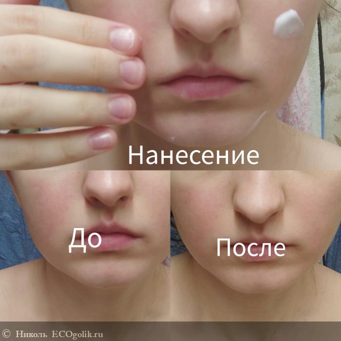 - Неплохо, но не надолго, устраняет сухость, избавляя от шелушений. В течение дня нужно обновлять. Если что, внизу после не покраснения, так свет упал.