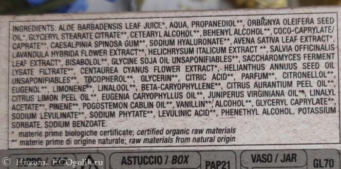 - Aloe Barbadensis Leaf Juice (сок алоэ вера) увлажняет, защищает, успокаивает, обладает противовоспалительным действием.