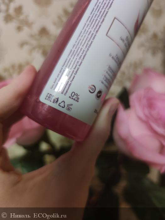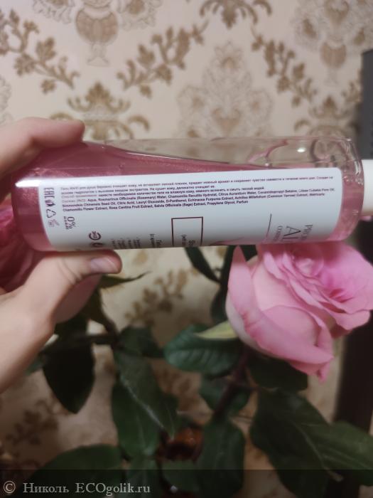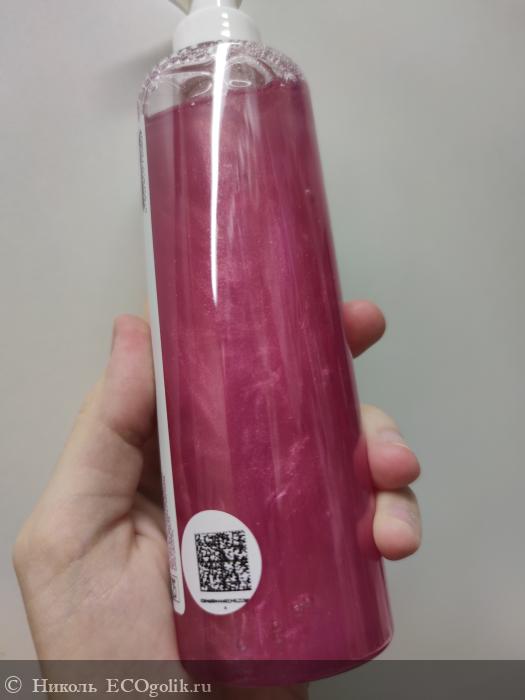 Несмотря на то, что гель имеет яркий розовый оттенок, на цвет кожи он никак не влияет, не окрашивает её. Гель нежно обволакивает кожу, легко распределяется по ней и с тела смывается быстро, не оставляя после себя ощущения липкой плёнки, стянутости или скользкости.