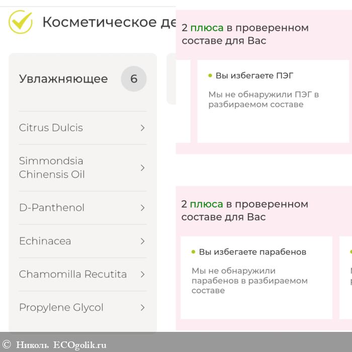 Подписка PLUS произвела анализ ингредиентов по косметическому действию, выделила, где какие компоненты используются и при каких проблемах, отметила мне 2 плюса.
