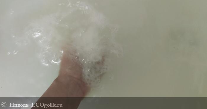 - Применение: Опустите гейзер в ванну, наполненную теплой водой (36-38 ˚С). Гейзер растворится с эффектом шипения и бурления, воздух наполнится приятным ароматом. Принимайте ванну 15-20 минут. (Я с малышом, кому и трёх ещё нет, принимала ванну с этим гейзером и всё было отлично. Никакой негативной реакции, покраснений, шелушений, зуда не было мной замечено на его и своей коже.)