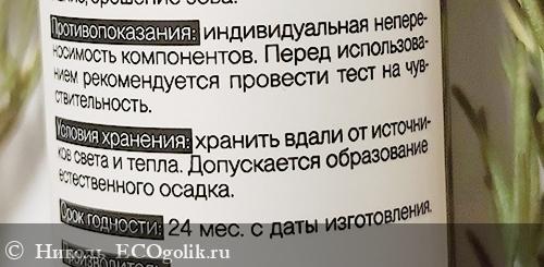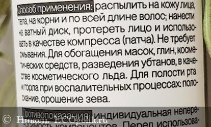 Вся необходимая информация про этот гидролат указана на влагоустойчивой наклейке, приклеенной на флакончик. Информация грамотно структурирована и разделена на пункты, каждый пунктик выделен. Текст легко читаем.
