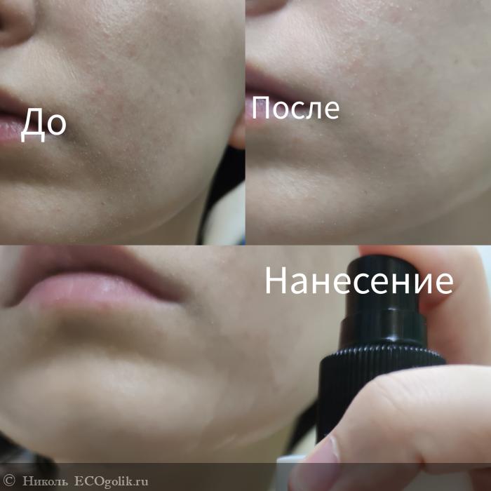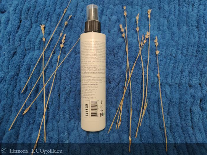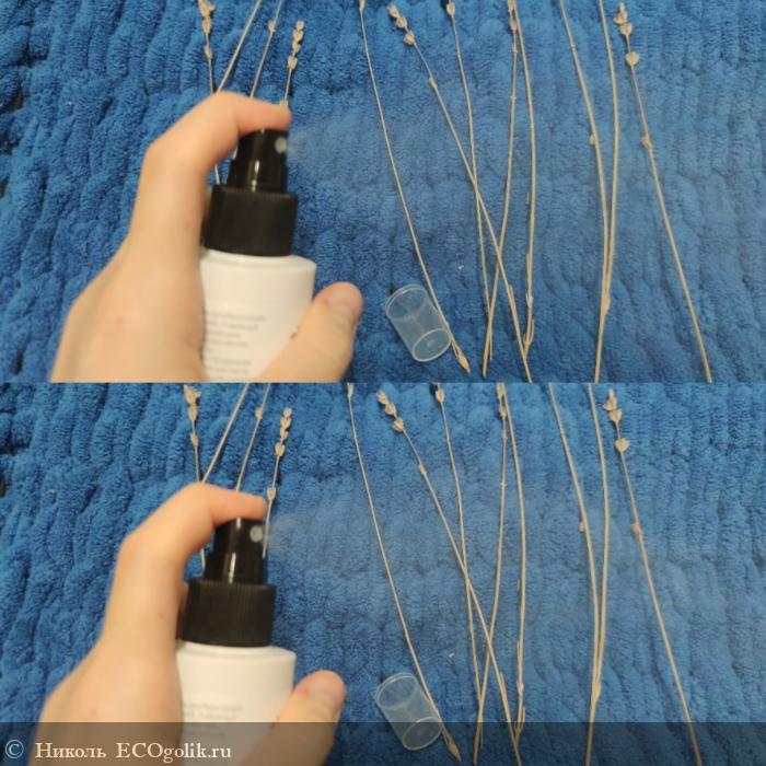 - Прекрасно устраняет сухость, избавляя от лёгких шелушений. Да, это не крем, а лишь гидролат с лаванды и гиалуроновой кислотой, поэтому эффекта хватает не надолго и надо пшикать снова.