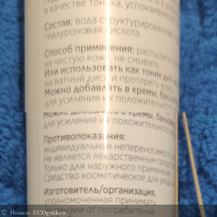 - Способ применения: распылить гиалуроновый гидролат на чистую кожу, не смывать. Или использовать как тоник для лица: нанести гидролат на ватный диск и протереть кожу. Можно добавлять в кремы, бальзамы, молочко и маски для усиления их положительного эффекта.