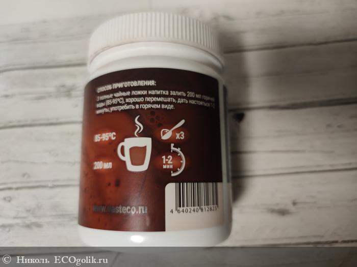 - Способ приготовления: 3 чайные ложки напитки залить 200 со горячей воды (85-95°С), хорошо перемешать, дать настояться 1-2 минуты, употребить в горячем виде.