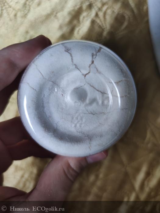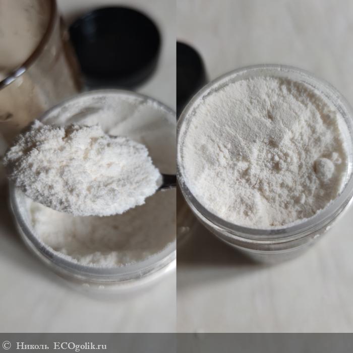 В баночке хранится порошок сливочного оттенка, с небольшими кусочками кедрового ореха.