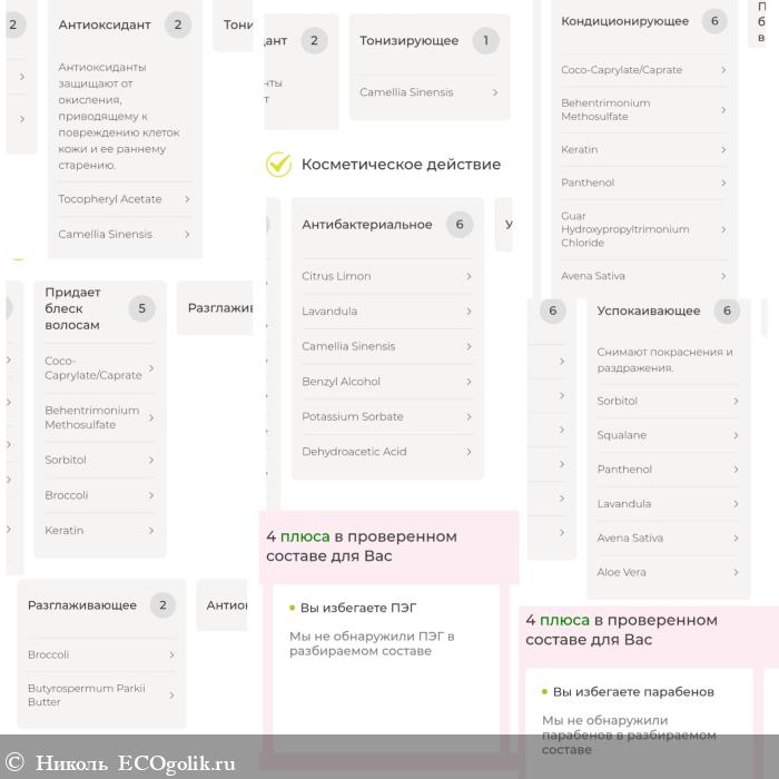 Состав у этого уходового продукта шикарный. Он без вредных силиконов, сульфатов и парабенов, в нём отсутствуют искусственные консерванты, красители, синтетические отдушки, минеральное масло. Кондиционер идеально подходит для кудрявого метода и обеспечивает интенсивное увлажнение, питание, восстановление, ощутимое смягчение и в разных нанесениях даёт чудесные эффекты: подкручивание и повышение упругости завитка или заметное разглаживание.