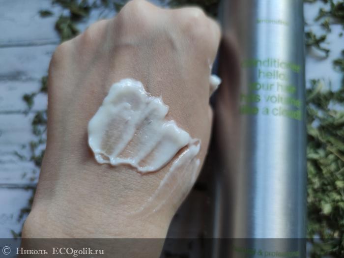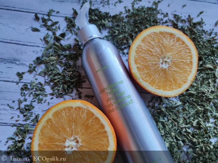 - Кондиционер для объёма и уплотнения тонких волос пахнет мне эфирным маслом мяты.
