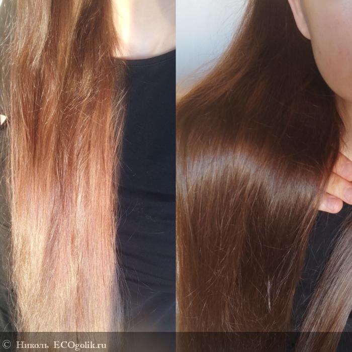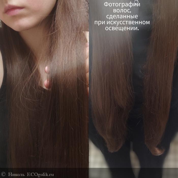 - Придаёт красивый блеск моим волосам, здоровое сияние. Покажу, как выглядят волосы на солнышке и при искусственном освещении.