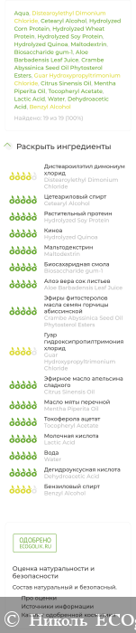 Состав одобрен этим сайтом. Кондиционер входит в каталог одобренной косметики ECOgolik.ru.