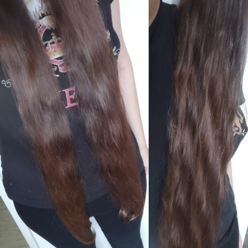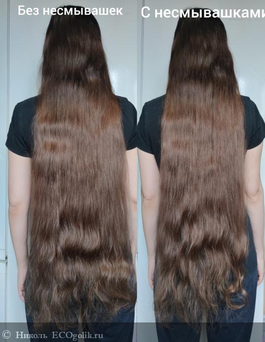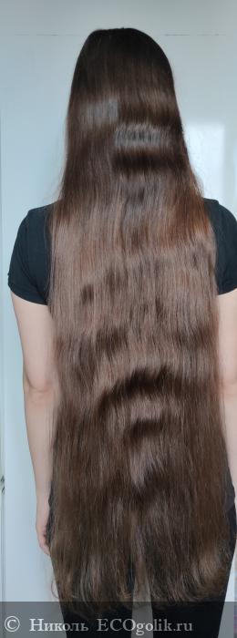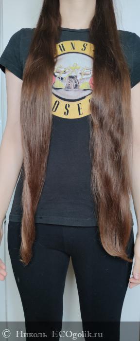 - Хорошо увлажняет и удерживает влагу за счёт создания не ощутимой и невидимой плёночки на волосах. Тут эффект без несмывашек. На днях подровняла кончики волосиков на 2 см, была длина 112 см, теперь 110 см у меня. Больше года никак не получалось подровнять и вот появилась возможность. И ещё классно совпало, что растущая луна была.