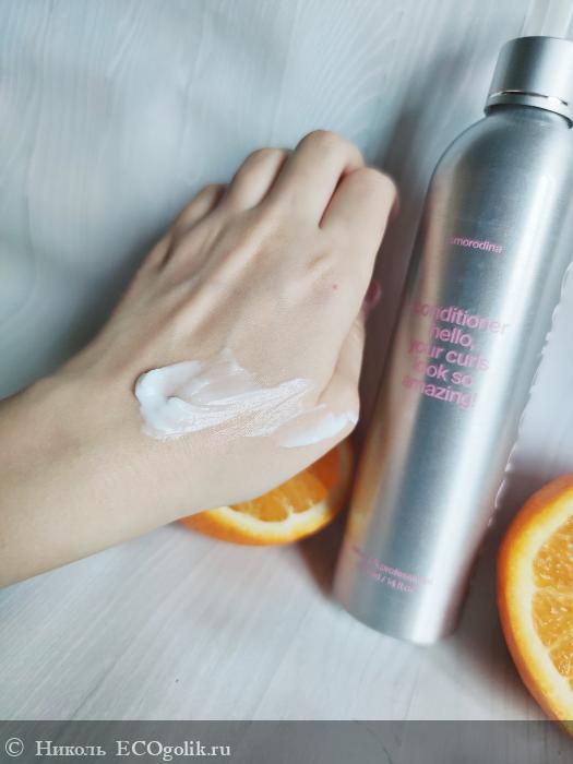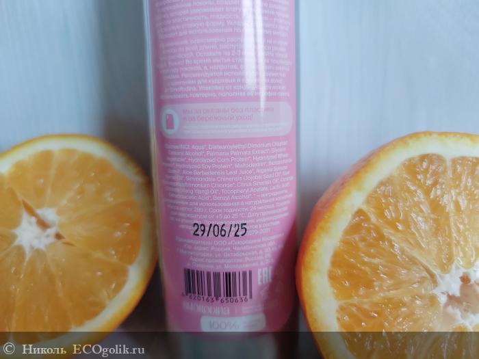 Аромат у кондиционера приятный, цитрусовый, в котором чувствуются нотки эфирного масла апельсина. На волосах он надолго не остаётся. Чувствуется примерно 2 часа после мытья.
