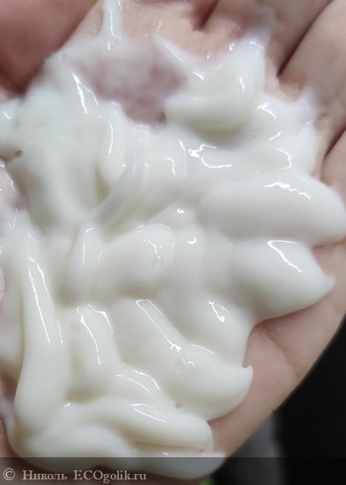 Консистенция у него средней густоты, белого цвета, кремовой текстуры. Легко распределяется по волосам и быстро с лёгкостью с них смывается.
